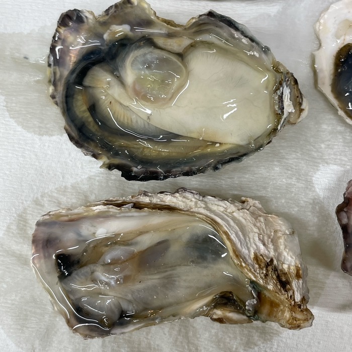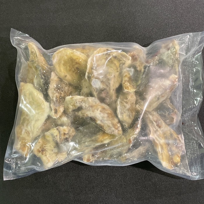 1年肥育の若カキで、水揚げから1時間で冷凍してます。