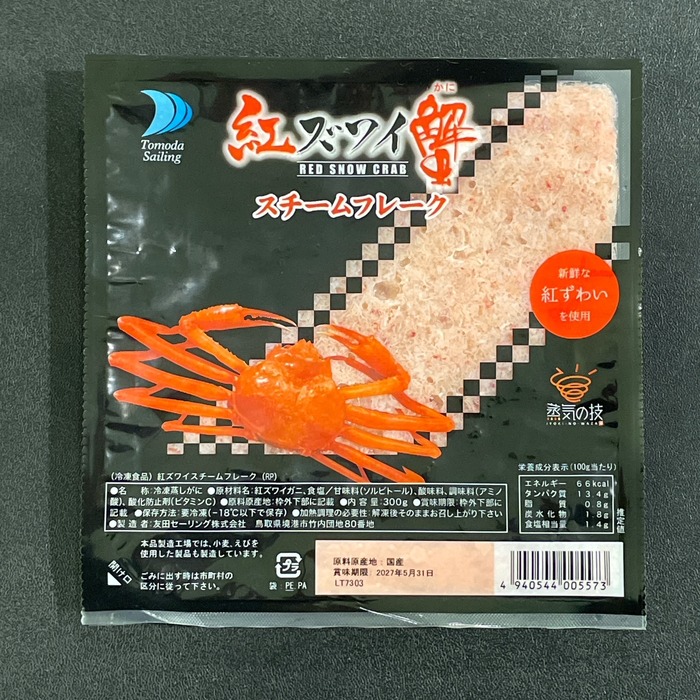主原料: 紅ズワイガニ、食塩、甘味料(ソルビトール)、酸味料、調味料(アミノ酸)、酸化防止剤(ビタミンC)